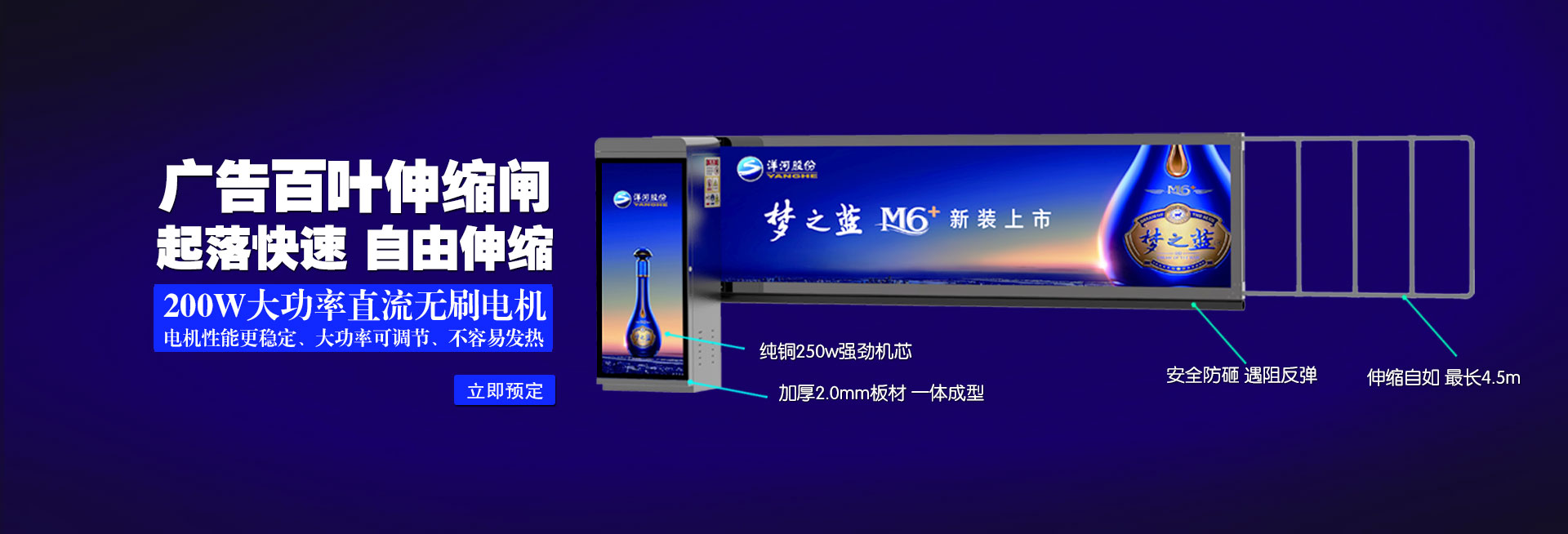 公司創(chuàng)建于2010年,是國內(nèi)智能出入管理系統(tǒng)行業(yè)最具規(guī)模的集研發(fā)設(shè)計(jì)、生產(chǎn)制造、營銷推廣于一體的品牌企業(yè)之一。公司主打產(chǎn)品為拉布燈箱閘、車牌識別道閘一體機(jī)、廣告伸縮道閘、百葉廣告道閘、直桿道閘、柵欄道閘、折臂道閘、智能人行門、車牌識別、廣告護(hù)欄等。